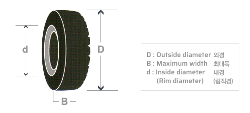 | TYPE OF TIRE(구분) | HOW TO INDICATE(규격표시방법) | EXAMPLE(예) |